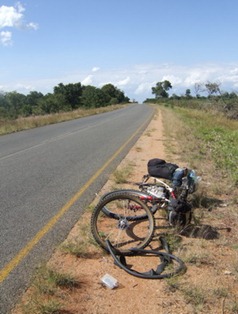Problema resolvido, decidi aproveitar e analisar as surpresas que a minha bicicleta tinha reservado para mim. À parte do habitual molho de raios que insistiam em desapertar-se sozinhos, tinha também a brecha do aro traseiro em constante crescimento. Já faltavam menos de cinco dedos da minha mão, para a fenda perfazer ¼ de círculo na pista de travões do aro traseiro. Restava-me saber se este aro aguentaria até Maputo, ou se eu iria viver outro calvário, como o sofrido num passado demasiado recente.
